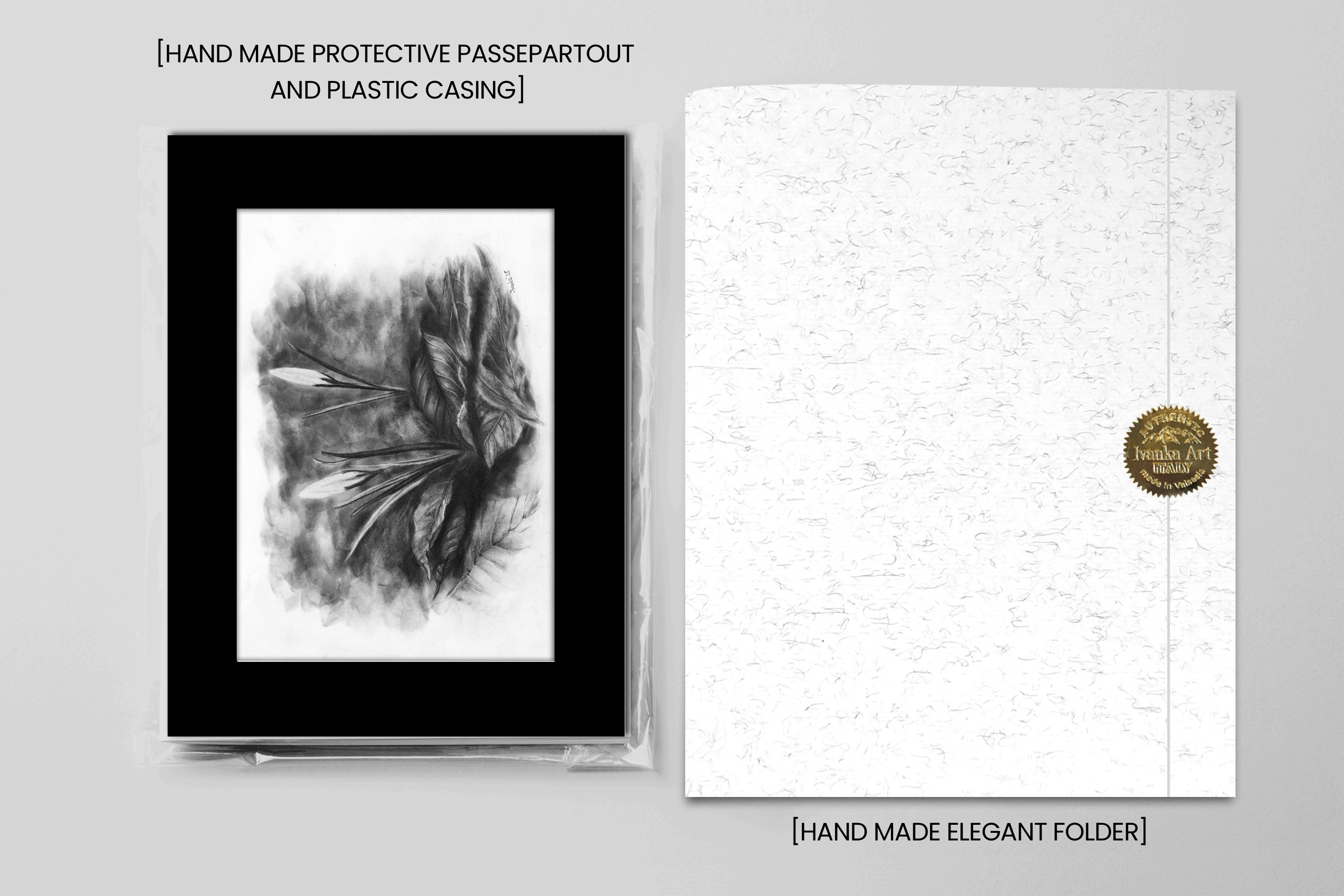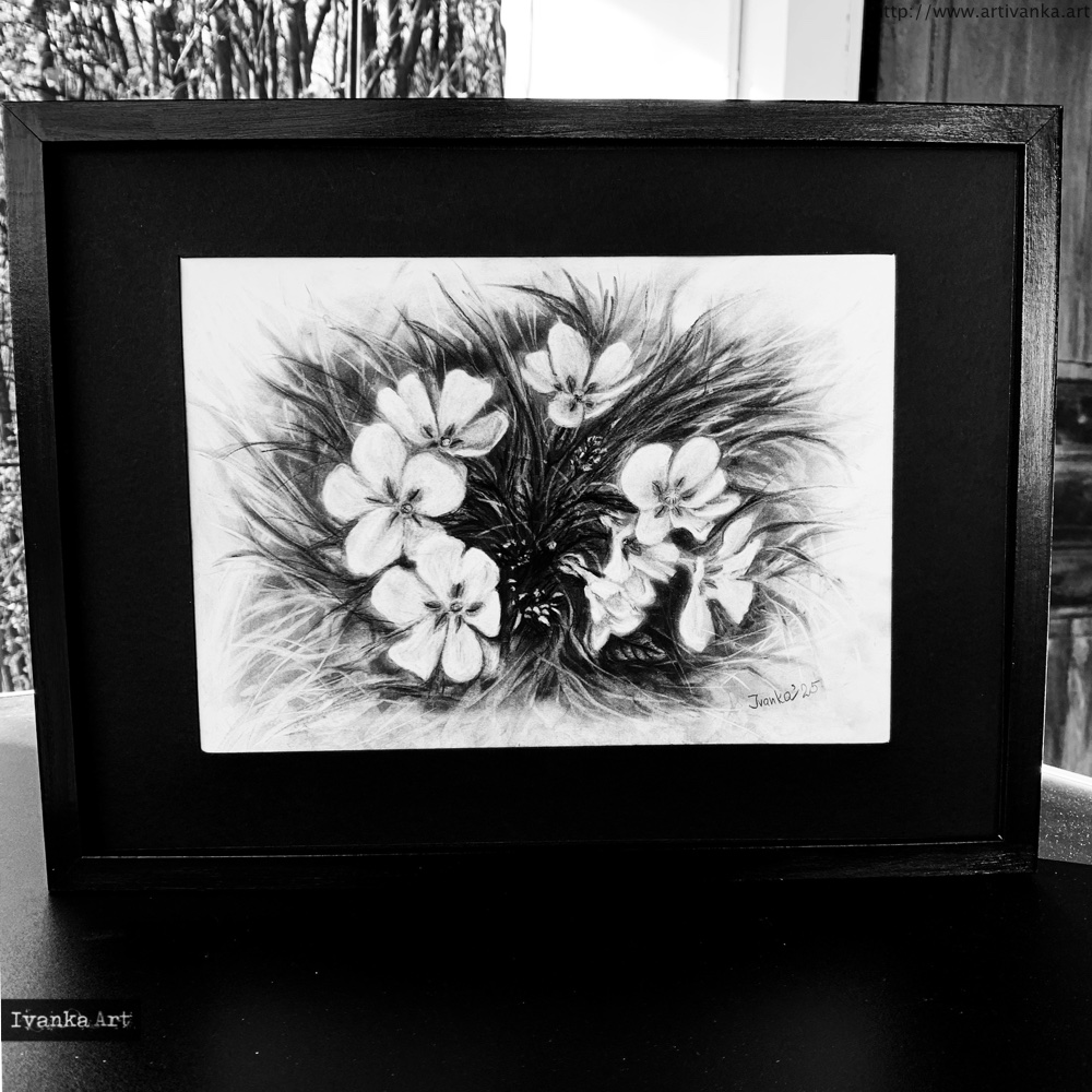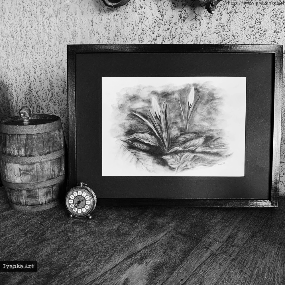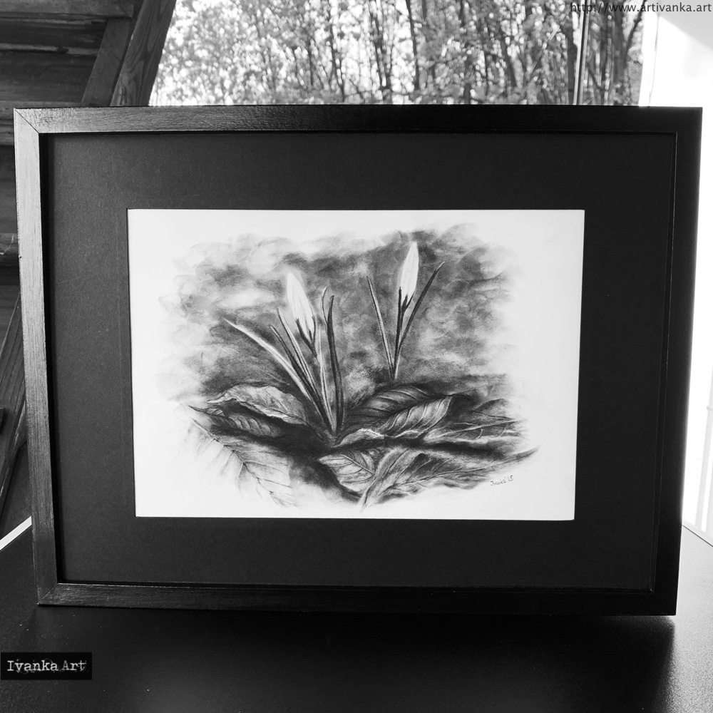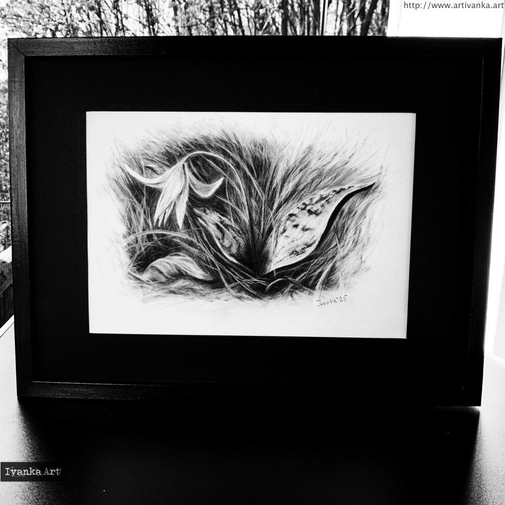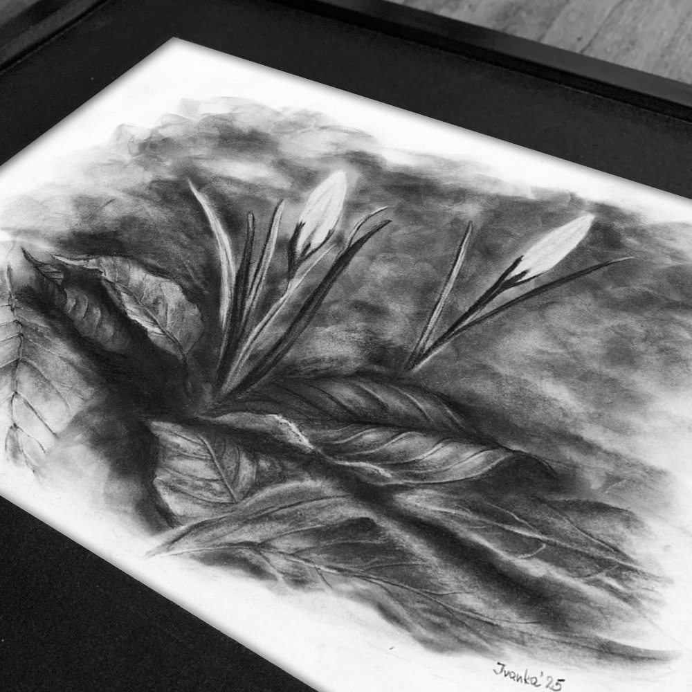 Ogni sfumatura, ogni tratto, è realizzato interamente a mano da Ivanka Art, che con sensibilità e precisione trasforma il carboncino in luce e poesia. Il contrasto tra ombra e bagliore rivela la fragile forza della natura e invita l’osservatore a riscoprire la bellezza nascosta nei dettagli più semplici.