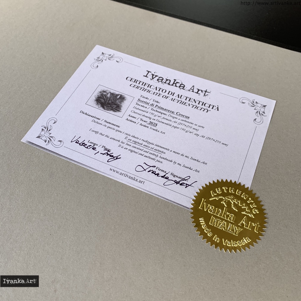 Un delicato omaggio al primo sorriso della primavera. Questo disegno originale a carboncino, parte della collezione “Sorrisi di Primavera”, cattura l’attimo in cui il Crocus, tra i primi fiori a sbocciare dopo l’inverno, rompe il silenzio della terra fredda per annunciare la rinascita.