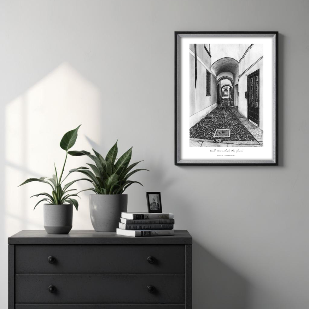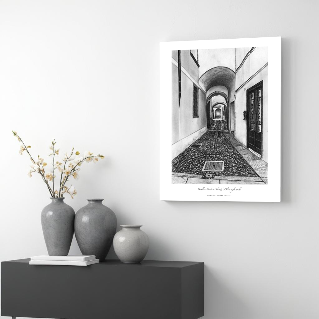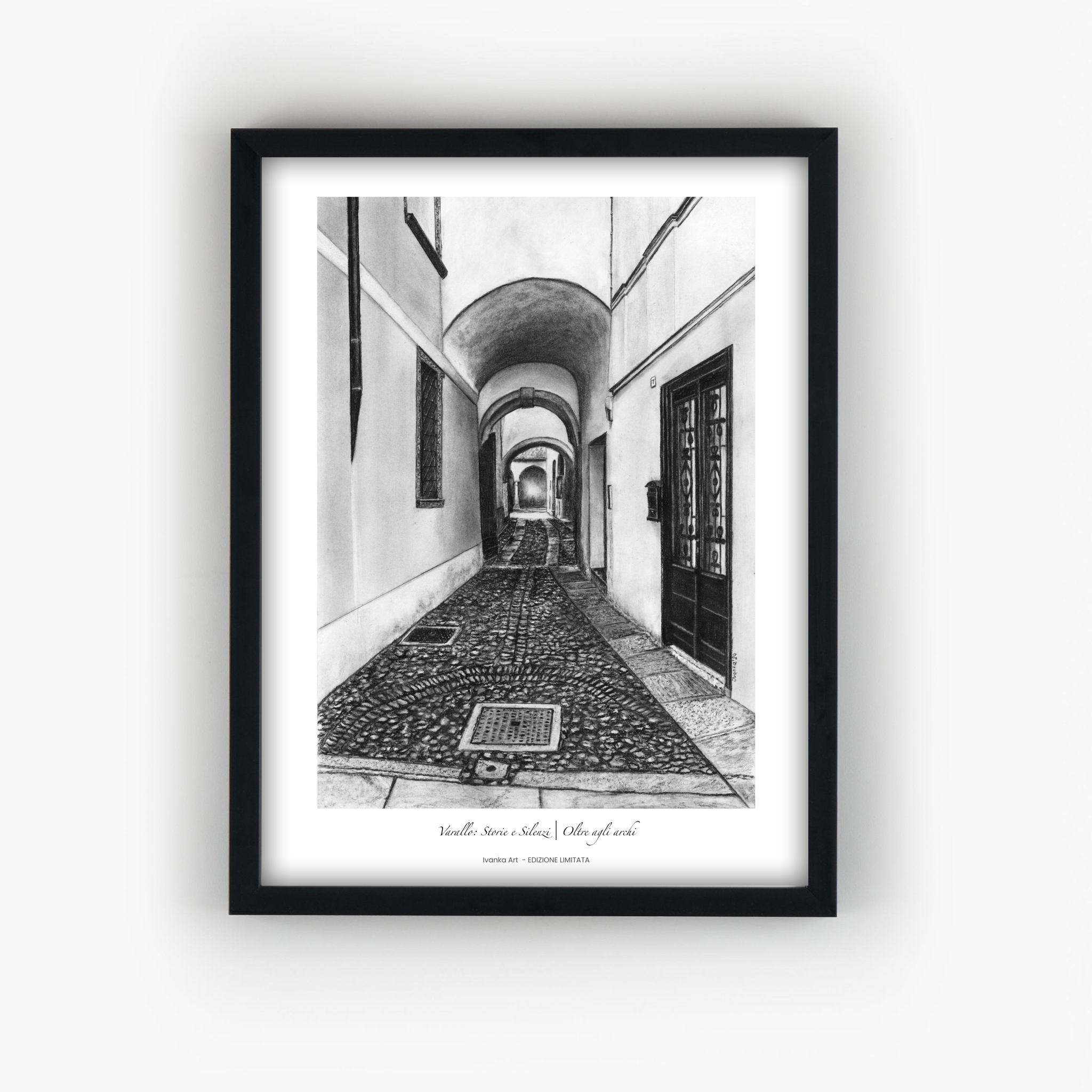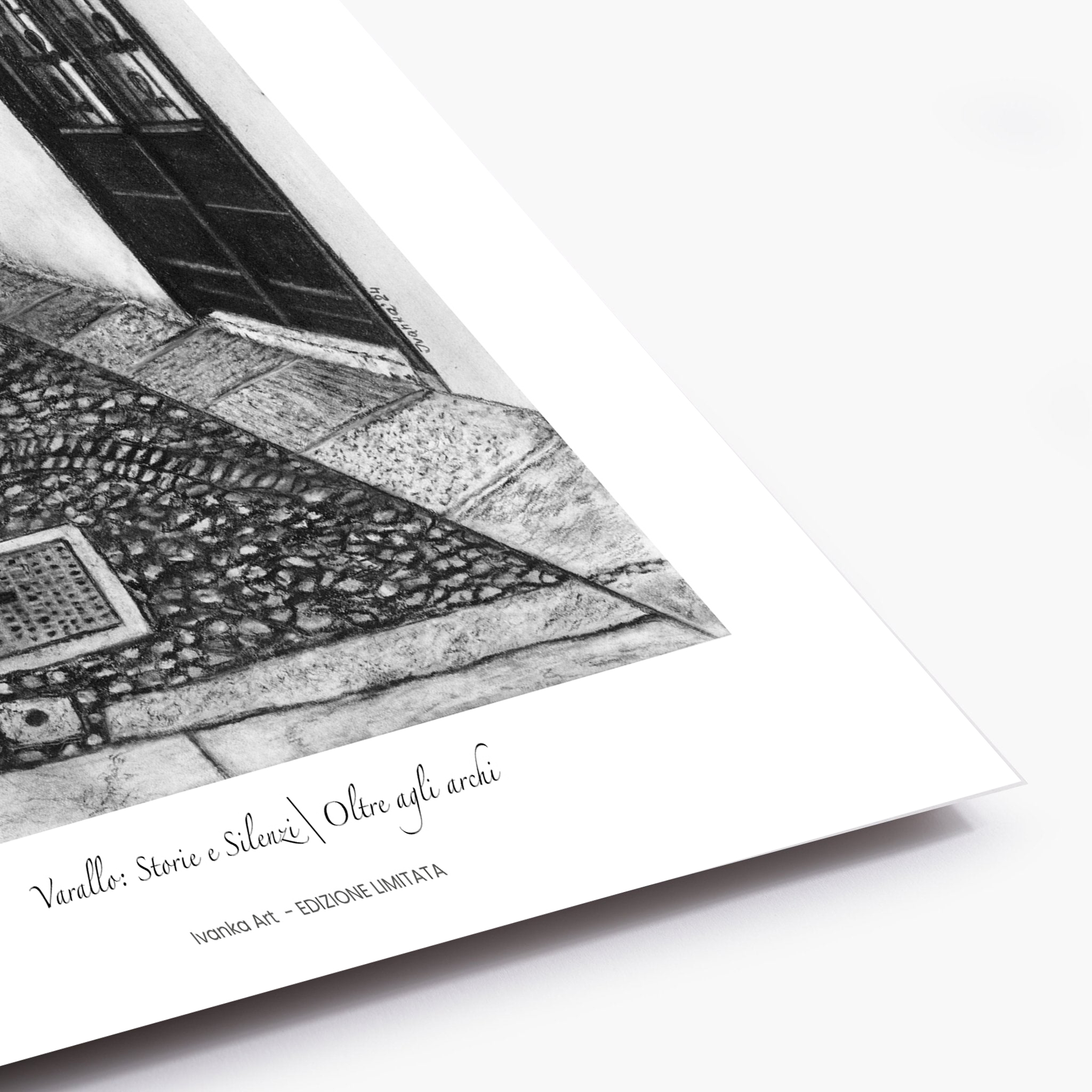 Con linee delicate e contrasti decisi, ho voluto esaltare la bellezza autentica di questo luogo, dove ogni pietra racconta silenziosamente il tempo che passa. Questa stampa racchiude la curiositĂ e la magia di un angolo di Varallo che continua a parlare al cuore di chi lo osserva.